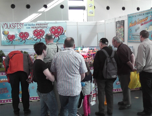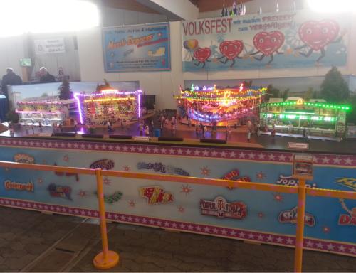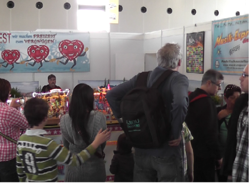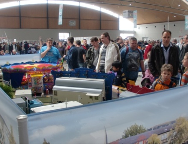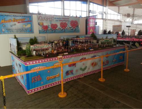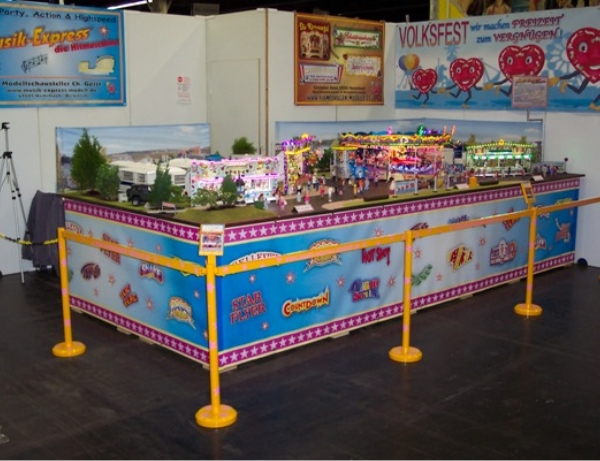 Wir bedanken uns für Euer großes Interesse und zahlreiches Erscheinenund bei der Messe Sinsheim für die tolle Veranstaltung!Unser Stand Nr.: 4334 in der -Arenain der Messe Karlsruhe22. März bis 25. MärzModellsport pur gab es vom 22.-25.März in den Messehallen der Messe Karlsruhe zu erleben. Annähernd 50.000 Besucher kamen trotz Kaiserwetter, um in die Welt der Modelle einzutauchen.Erstmals wurde von den Ausstellern ein reger Anstieg französischer Besucher registriert, womit sich der Bekanntheitsgrad der „Faszination Modellbau“ bei ihrer dritten Durchführung in Karlsruhe nun auch über die nahe Landesgrenze hinweg ausgebreitet hat.Die „Faszination Modellbau“ bot nicht nur in ihrer Vielfalt das ganze Spektrum des Modellsports und der Modelleisenbahn, sondern auch eine hohe Qualität.Quelle: Messe Sinsheim GmbHDer Musik-Express ist nun soweit aufgebaut!Tisch nun vorbereitet für den Aufbau der ModelleBeginn des Aufbaus der ModelleAnbringen der Verkleidungen und BannerAusstellungstisch-AufbauAusstellungstisch-AufbauBegeisterung pur!Aufbau der ReihengeschäfteAuch die Eisenbahner sind sehr interssiert!Echt tolle Sache!Der Chef beim rekommandieren“Bitte einsteigen und los geht`s!”Der ModellkirmesplatzViel Andrang am SamstagUnd auch Sonntags war voll viel los!